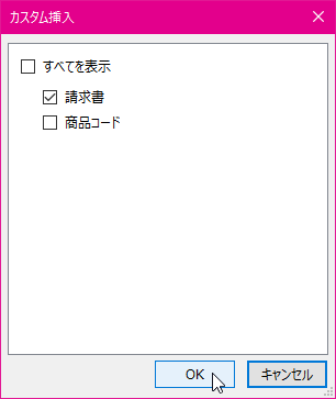 - [カスタム挿入]より対象となるグラフまたは表を選択します。