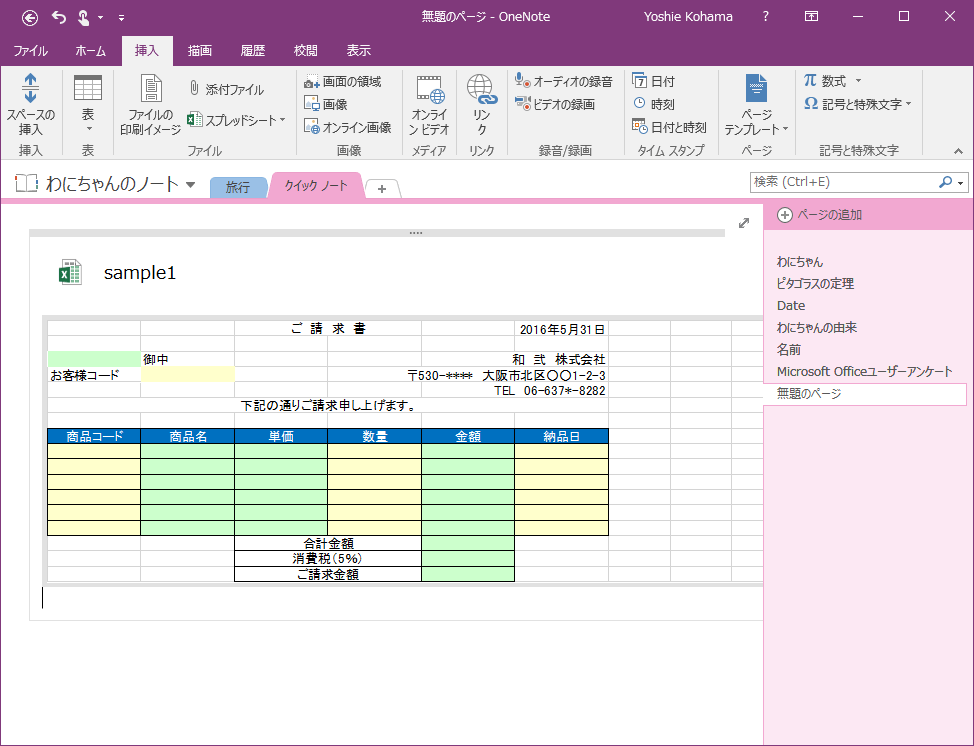 - 選択したシートがページに挿入されました。