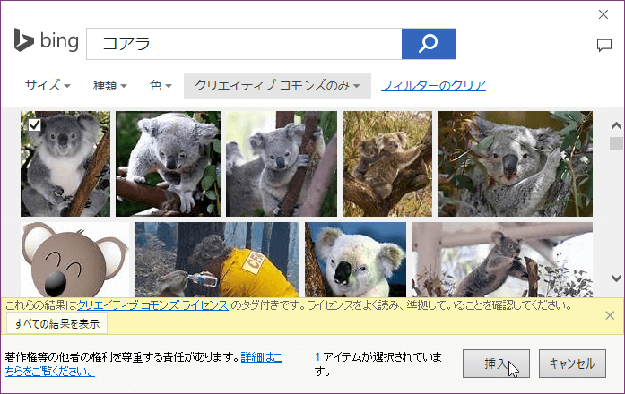 Bingイメージ検索 から挿入