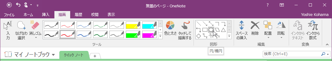 - [図形]グループのなかから[円/楕円]をクリックします。