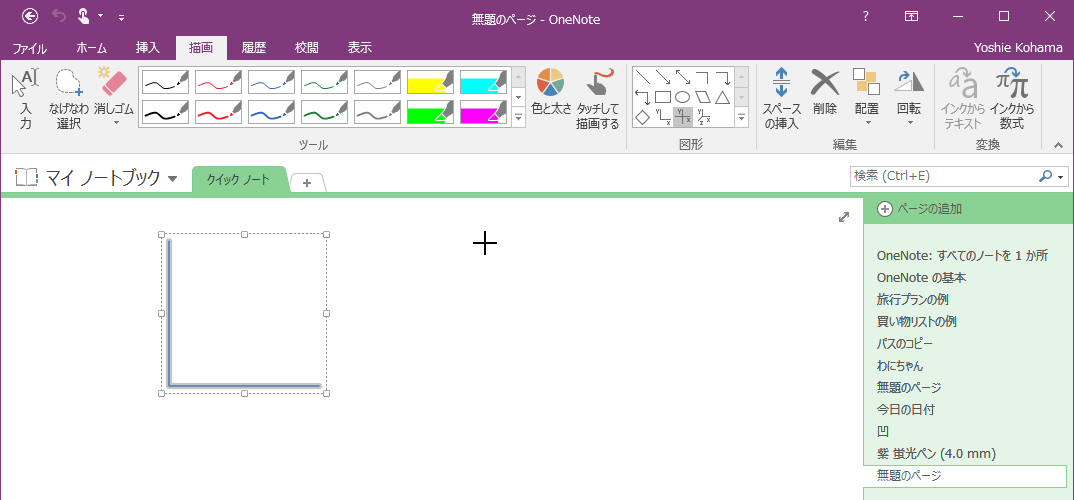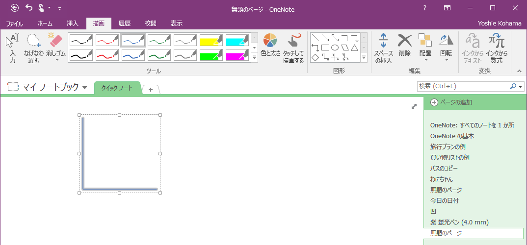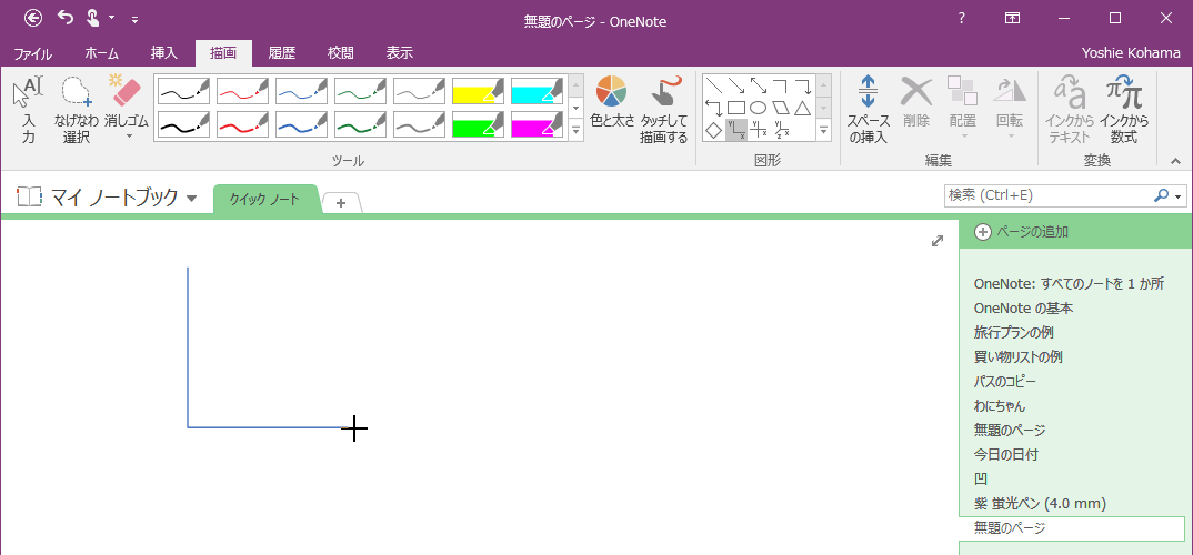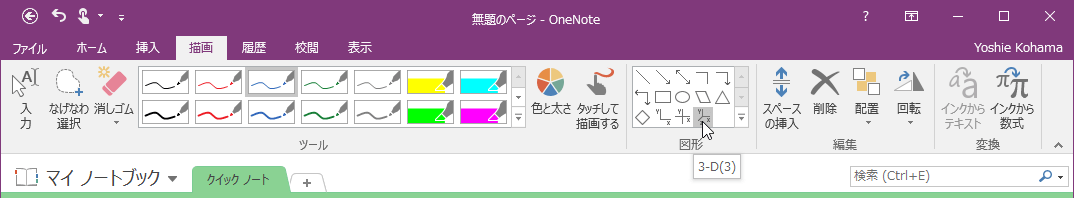 OneNoteでは2-Dや3-Dグラフ軸線を描くことができます。まず、線の色と太さを選択し、[図形]グループから描きたいグラフの種類を選択して、対角線上にドラッグします。