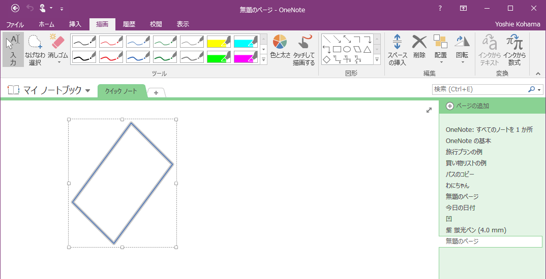 - 入力モードに切り替えます。描画モードになっている場合はEscキーを押すか[描画]タブの[入力]を選択します。