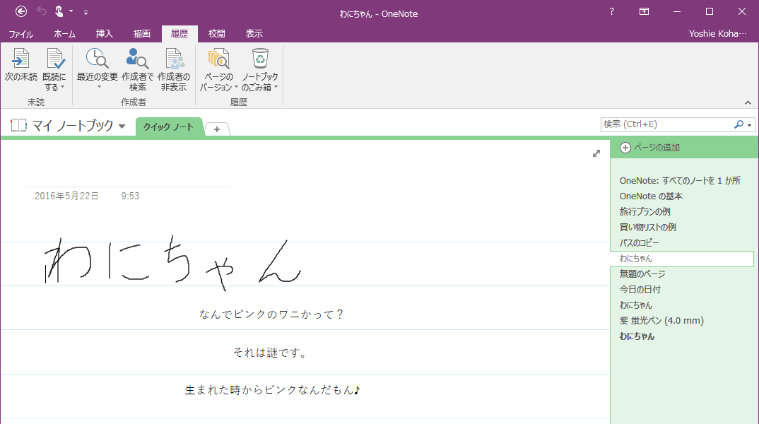 たとえば、iPadやiPhoneなど、別のデバイスで編集した場合や、共有ノートブックでほかのユーザーが編集した場合、未読としてマークされます。[履歴]タブをクリックし、[既読にする]の▼をクリックして[既読にする]を選択します。ショートカットキーCtrl+Qで、未読/既読の切り替えが行えます。
