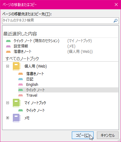 - コピー先のセクションを選択して、[OK]ボタンをクリックします。