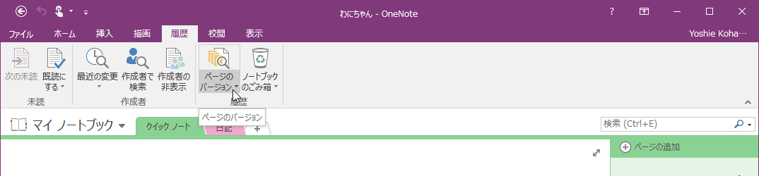 - [履歴]グループの[ページのバージョン]の▼をクリックします。