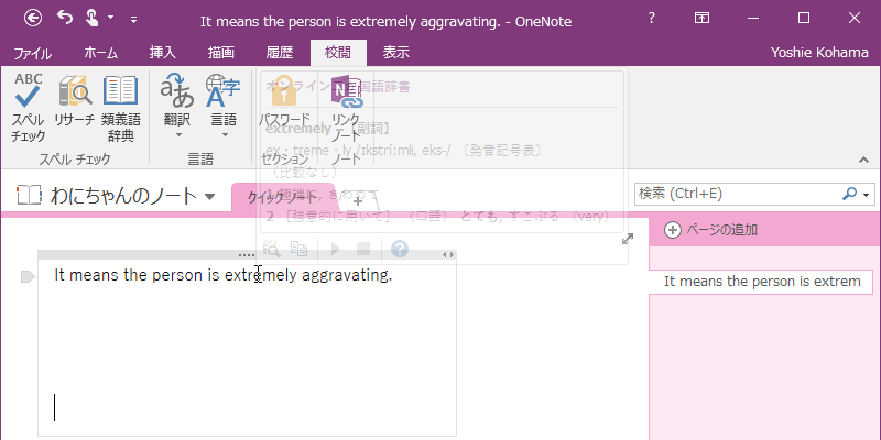 ポイントした単語の意味を表示する