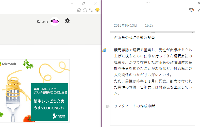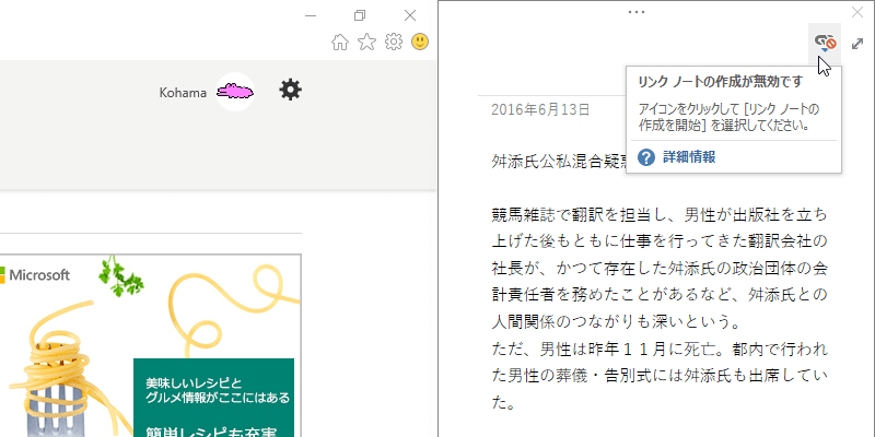 - リンクノートのアイコンが無効に変化しました。