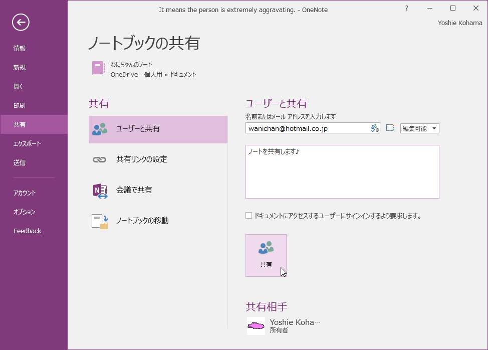 ノートブックの共有