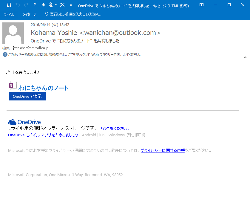 招待者が受け取ったメールは以下の図の通りです。