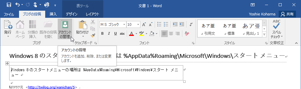 Word 2016でブログアカウントの追加に失敗しているので、もしかしたらWord 2016の問題かもしれません。ちなみにWindows Live Writerではアカウントの追加が行えました。