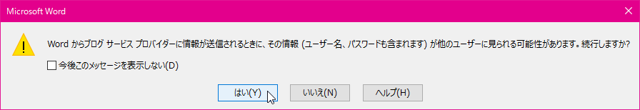 - 以下のメッセージを確認して、[はい]ボタンをクリックします。