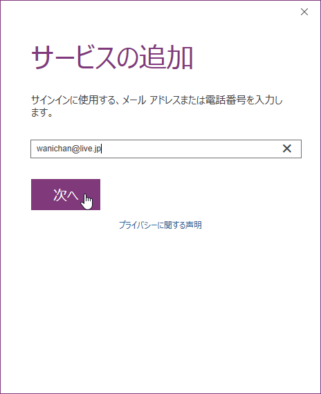 - 電子メールアドレスを入力して[次へ]ボタンをクリックします。
