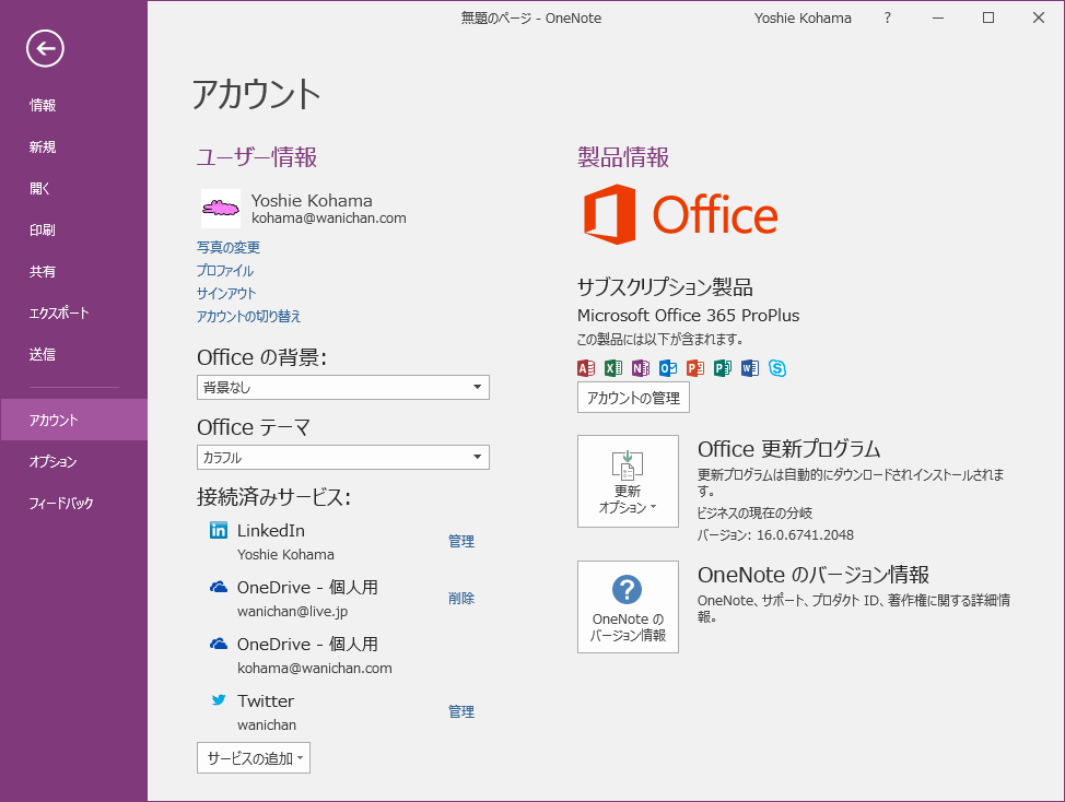 - [ファイル]タブを開き、[アカウント]タブを開きます。