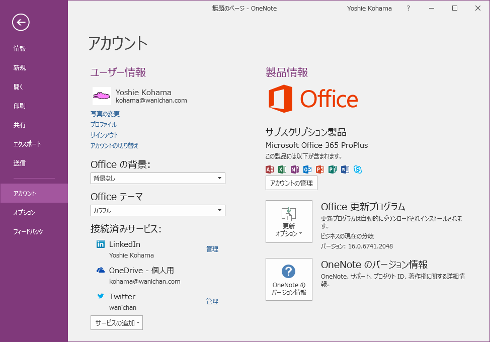 - [ファイル]タブを開き、[アカウント]タブを選択します。