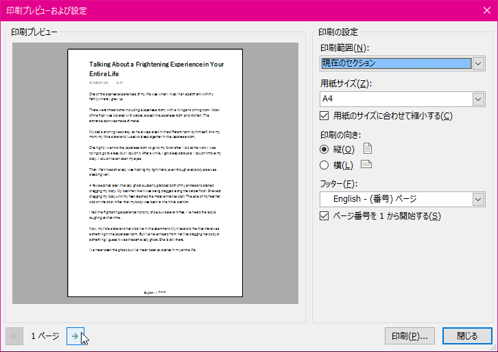 ここでは、現在のセクションを印刷範囲に設定する方法について説明します。