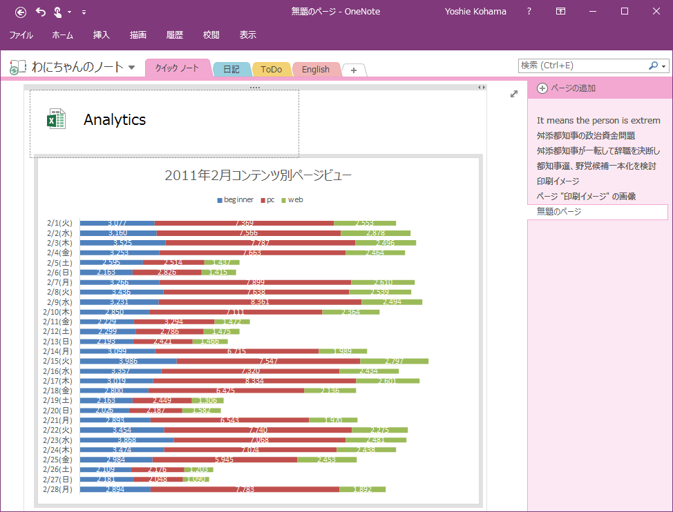 - OneNoteのページ上のExcelスプレッドシートのアイコンを右クリックして、ショートカットメニューより[名前の変更]を選択します。