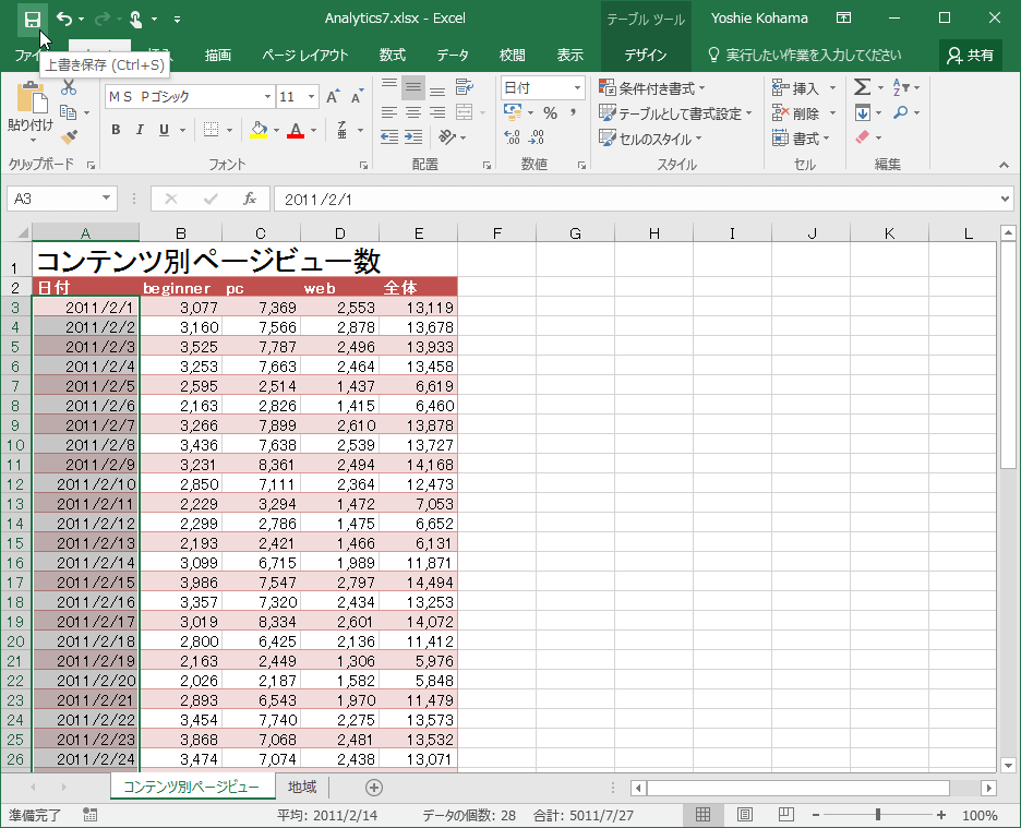 - Excelで編集したあと[上書き保存]をクリックします。