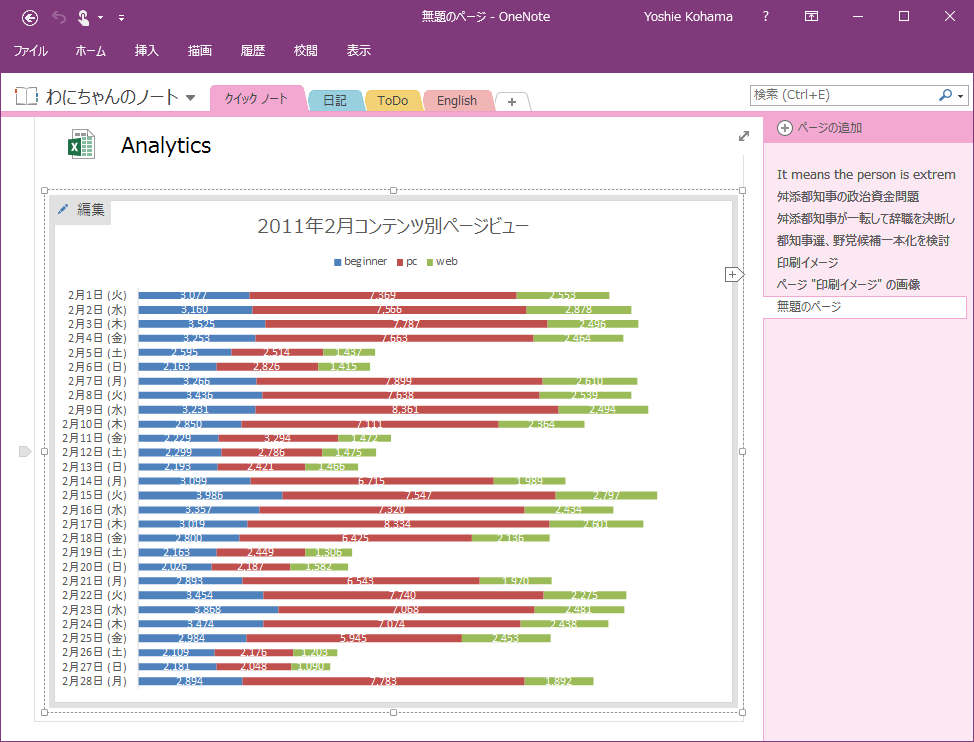 ノートブックを共有している場合、他の誰かがスプレッドシートをExcelで編集して保存した結果を最新の情報に更新したい場合、そのスプレッドシートのイメージを右クリックしてショートカットメニューより[更新]をクリックします。