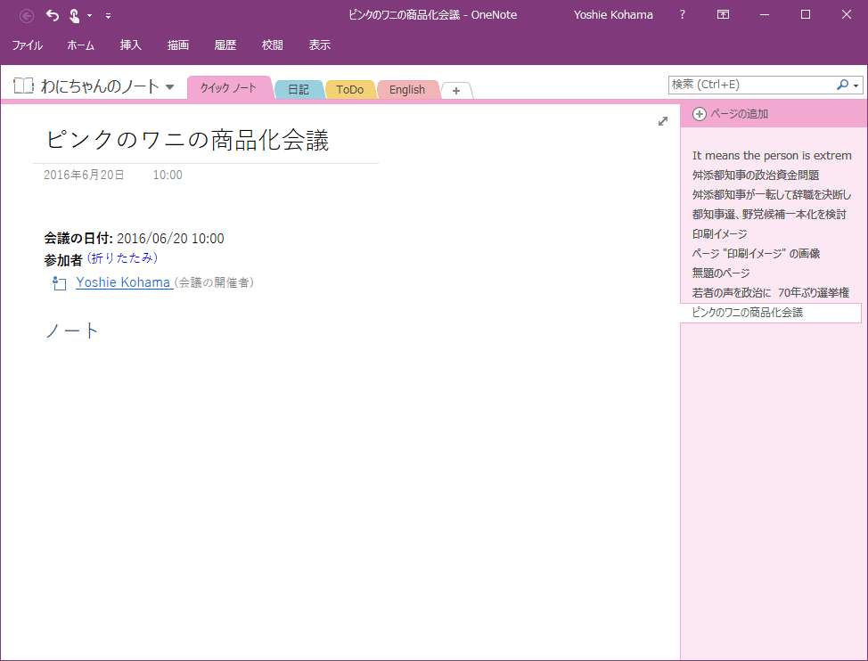 OneNoteに会議ノートが作成されました。