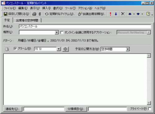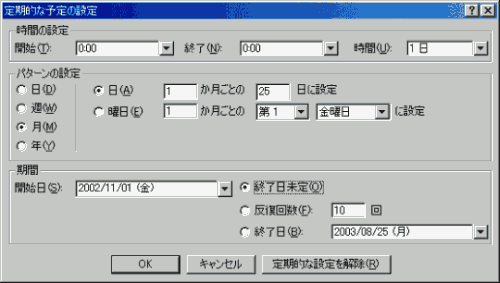 ボタンをクリックします。定期的な予定の設定ダイアログボックスが表示されます。