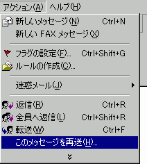 そのウィンドウ内のメニューバーより[アクション(A)]→[このメッセージを再送(H)...]をクリックしてください。