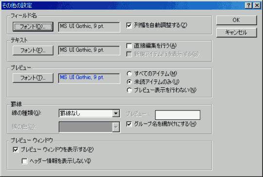 その他の設定ダイアログボックス内の[プレビューウィンドウ]グループ内に