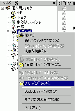 次に、受信トレイ内に「秘密」フォルダを作成する場合、受信トレイを右クリックして、