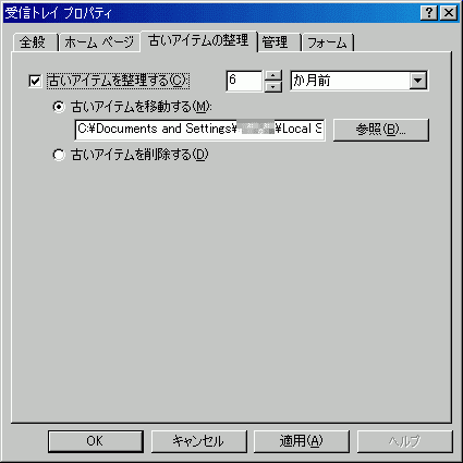 [古いアイテムを移動する]を選択して、OKボタンをクリックします。