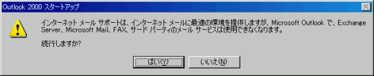 私は今のところOutlook Expressをメインとして使うのでとりあえず「いいえ」をクリックしました(^^;