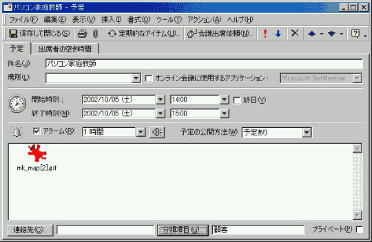 この予定の分類項目を「顧客」として割り当てて見ましょう。
