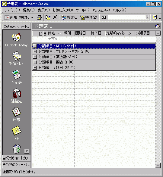 Outlookを使い始めてまだ1週間も満たないのですが、分類項目別に予定表のアイテムを分けてみました♪
