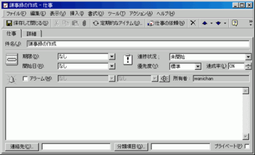 分類項目は、メッセージや予定のデータと同じように仕事も設定することができます。