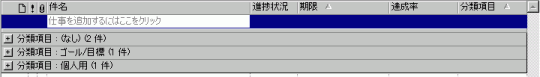 すると、どの分類項目にも割り当てられていない仕事は「なし」グループに該当し、一番トップに表示されます。