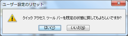 - [クイックアクセスツールバーのみをリセット]をクリックします。