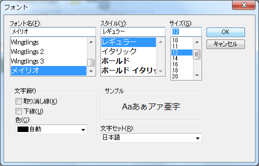 これではちょっと文字が小さい場合、書体を好きなものに変えたい場合、自由に変更することができます。