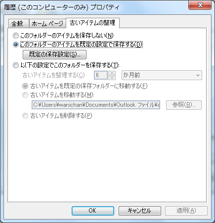 [履歴オプション]ダイアログボックスの[履歴項目の自動保存]ボタンをクリックすると、履歴がある一定の期間を過ぎるとアーカイブするオプションを設定できます。