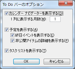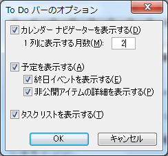 - [To Do バーのオプション]にて[1列に表示する月数]ボックスに「2」と入力して[OK]ボタンをクリックします。
