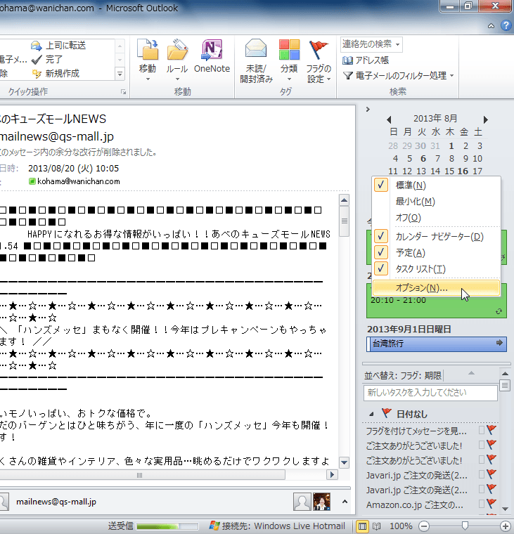 - Outlook のオプションを適用する、操作する