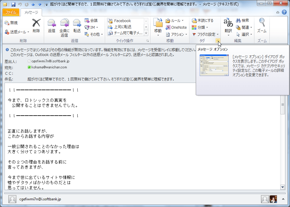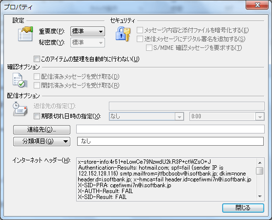- メッセージのプロパティが表示されました。