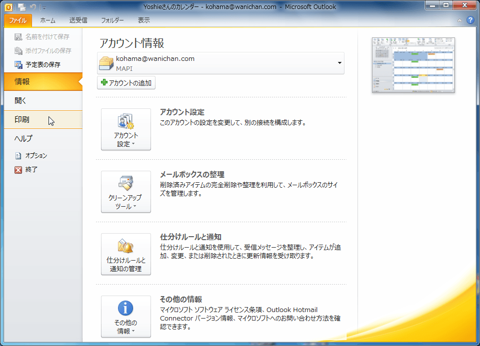 Outlook アイテムを印刷する