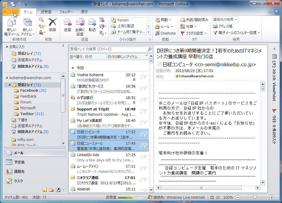 - 複数のメッセージを選択して、[ファイル]タブを選択します。