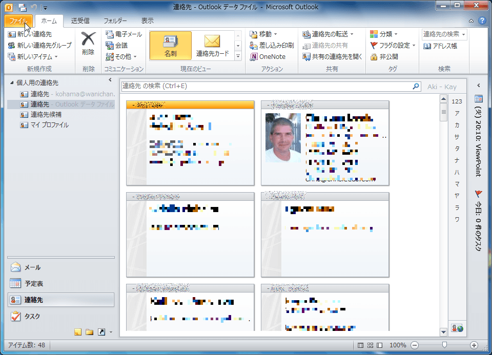 - 印刷したい連絡先を表示して[ファイル]タブを選択します。