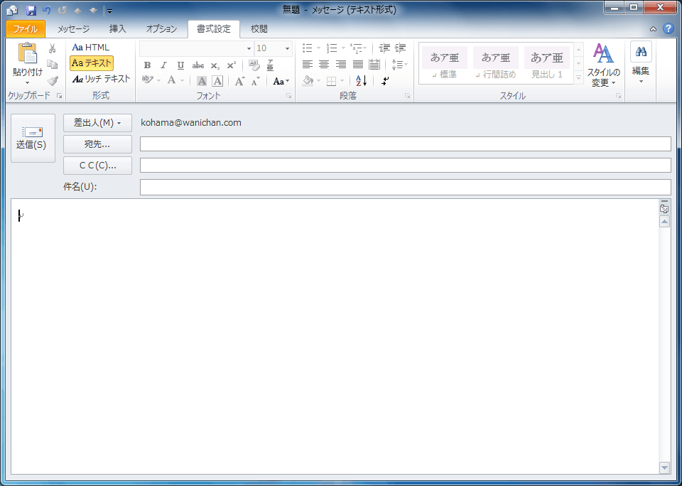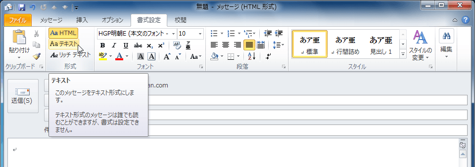 ここでは、携帯のメールアドレス宛てにメールを送るのを想定して、テキスト形式に変更する方法について説明します。