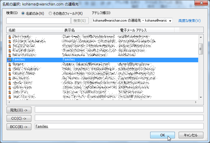 - アドレス帳から連絡先グループを選択して、宛先、CCまたはBCCを選択します。
