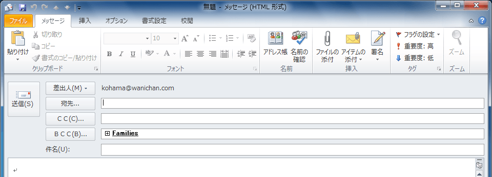 一度に複数の人にメッセージを送信するには、連絡先グループを作成して、そのグループを選択するとOKです。不特定多数の人に送信する場合は、BCCに設定したほうがよいでしょう。