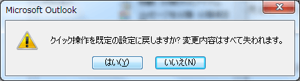 - [クイック操作の管理]ダイアログボックスで[既定にリセット]ボタンをクリックします。