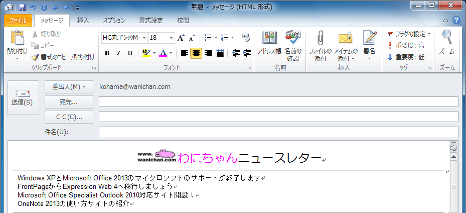 [メッセージ]タブの[フォント]グループ