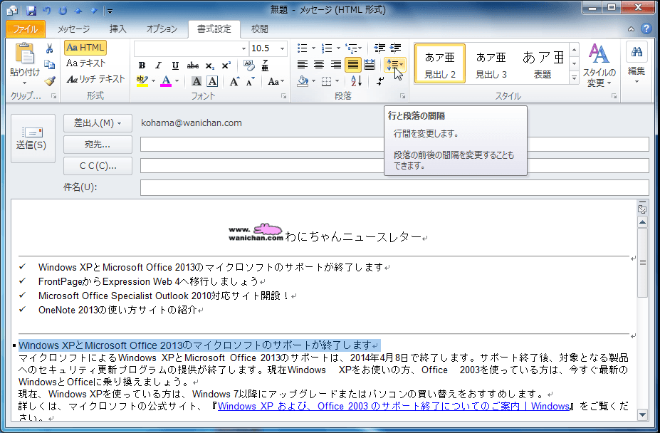 - 行間隔を調整したい段落内にカーソルを移動します。
