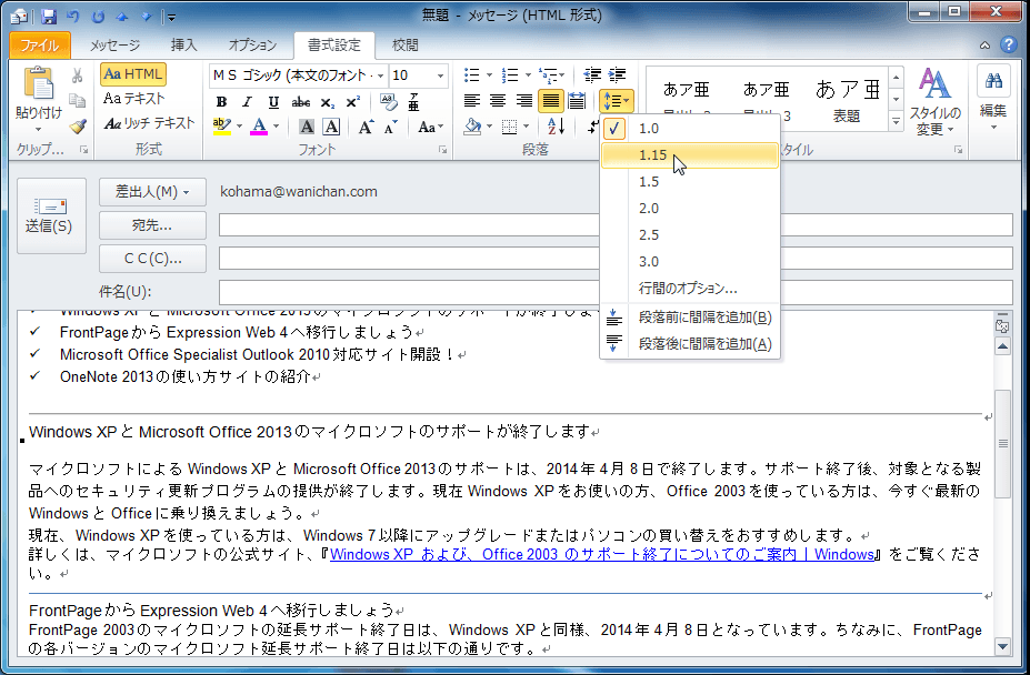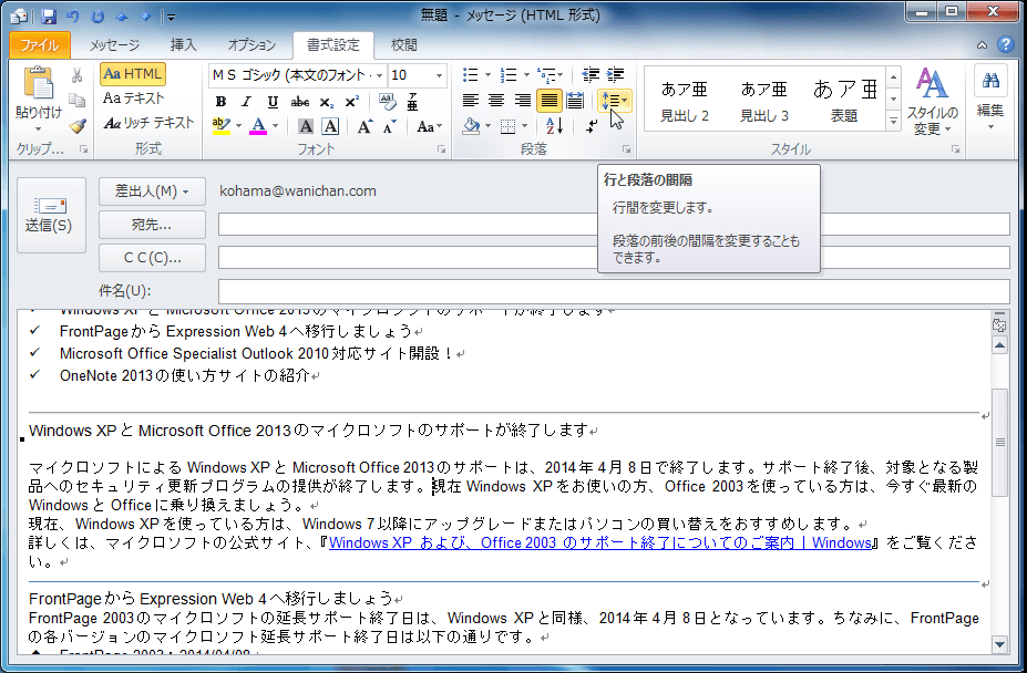 - 段落後に間隔を追加したい段落にカーソルを移動します。