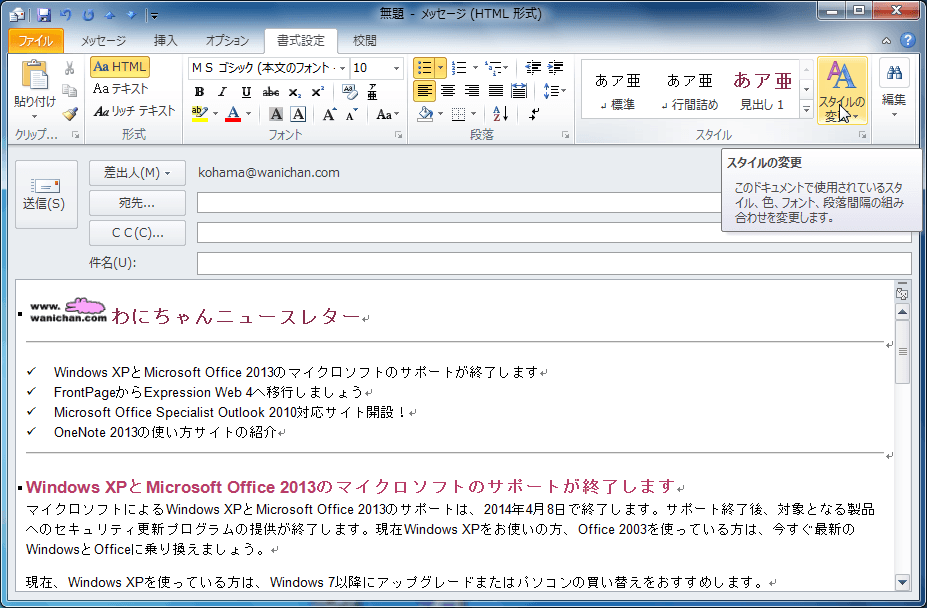 - [スタイル]グループの[スタイルの変更]をクリックします。